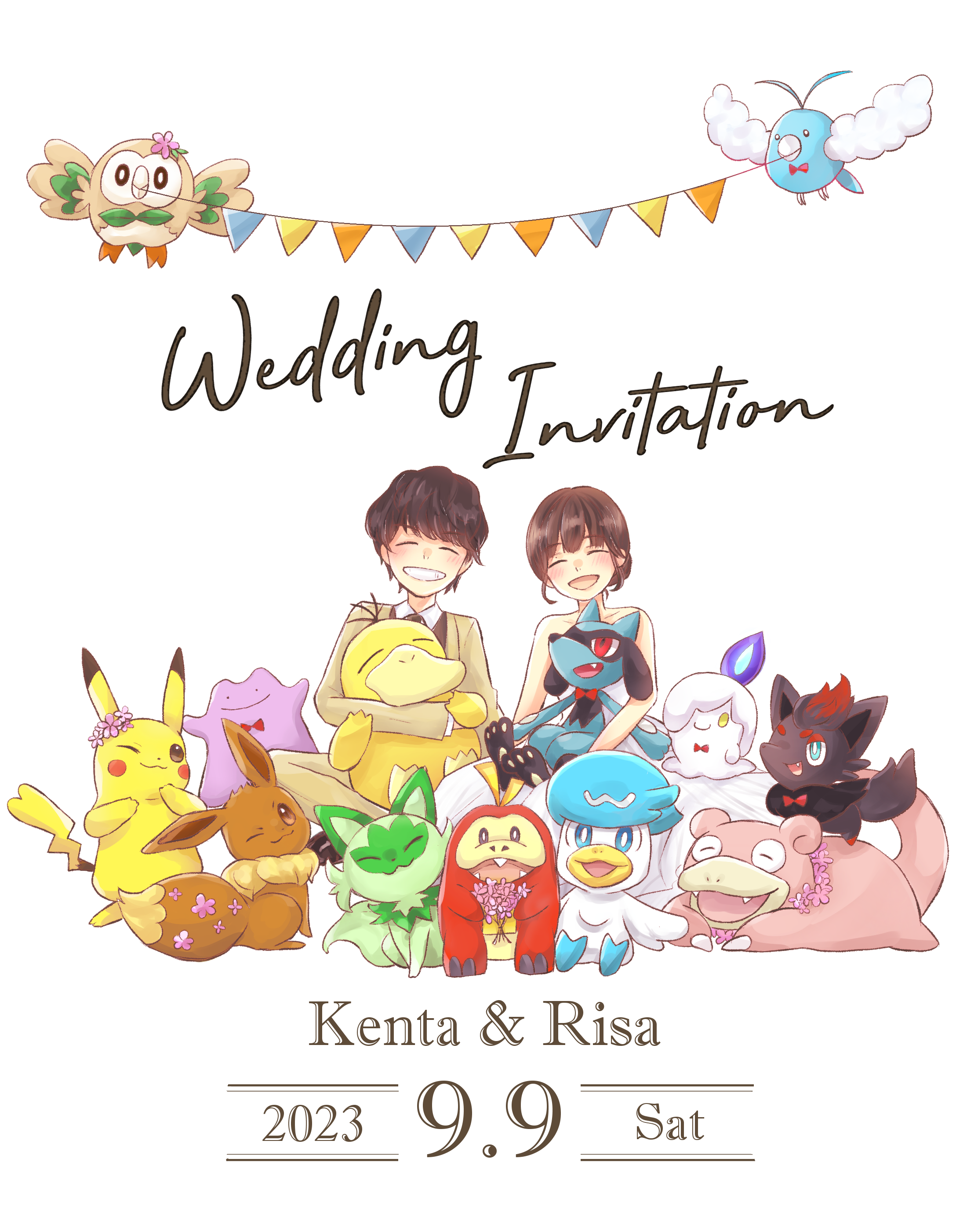 じこしょうかい けんた 趣味 ギター/ゲーム/ソフト/野球 好きな食べ物 ハンバーグ/ラーメン 好きなポケモン コダック/ヤドン/ゾロアーク 一言 みなさんの思い出に残るような最高の結婚式にします!! りさ 趣味 ドライブ/食べること/イラスト 好きな食べ物 ハンバーガー/けんたの料理 好きなポケモン ルカリオ/メタモン/イーブイ 一言 来てくださった方全員を笑顔に出来るような結婚式にしたいです!